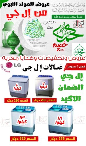 🚨 غساله * *إل جي كيلوا * بمناسبه المولد النبوي الشريف 🚨 عروض وتخفيضات المولد النبوي الشريف في اسعار جميع انواع الغسالات * إشتري اي موديل من غسالات شركه إل جي واحصل على خصم حقيقي 35٪ فقط لمده يومين *ملاحظه* السعر بالريال اليمني يختلف باختلاف الصرف حسب اليوم والساعه اتبع هذا الرابط لمشاهده عروض وتخفيضات عيد الاضحى المبارك اضغط على الكتالوج الخاص بنا في واتساب: